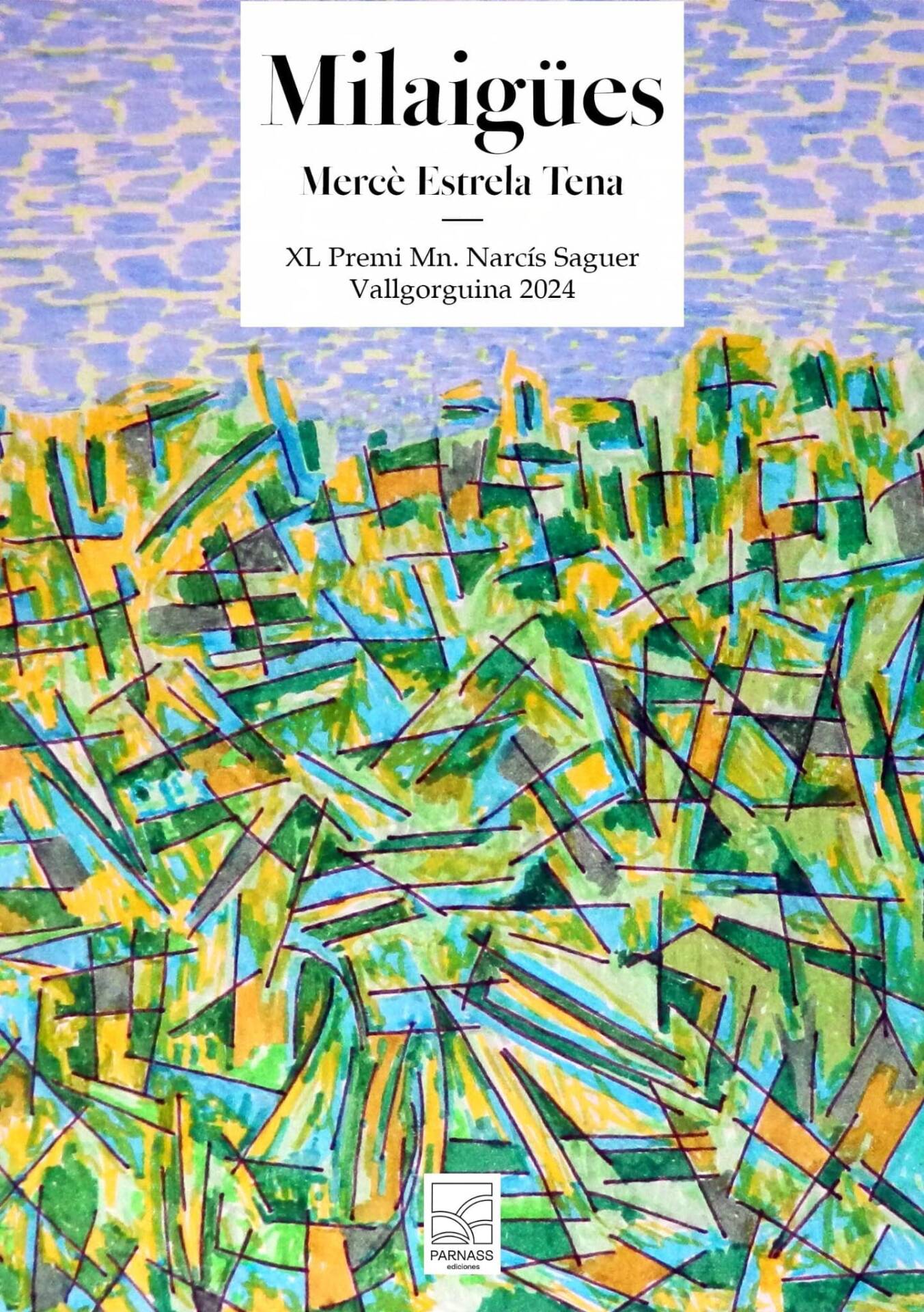Milaigües, el seu treball més recent, s’ha editat en abril del 2025 sent guanyador del premi de poesia Mossèn Narcís Seguer, que patrocina l’Ajuntament de Vallgorguina i edita amb molt de gust l’editorial Parnass. S’ha de dir, per als enamorats del paper, que físicament el llibre és atractiu per moltes raons, entre elles el tacte, tan agradable, i la portada i les il·lustracions interiors, tan cridaneres a la vista, que combinen els versos de l’autora amb la intensitat i l’harmonia de les làmines que l’acompanyen i que són en realitat, no sols un complement al text, sinó una proposta cultural de l’artista plàstic Ramon Estrela, que funciona de manera autònoma, viva diria jo, dins les pàgines del llibre.