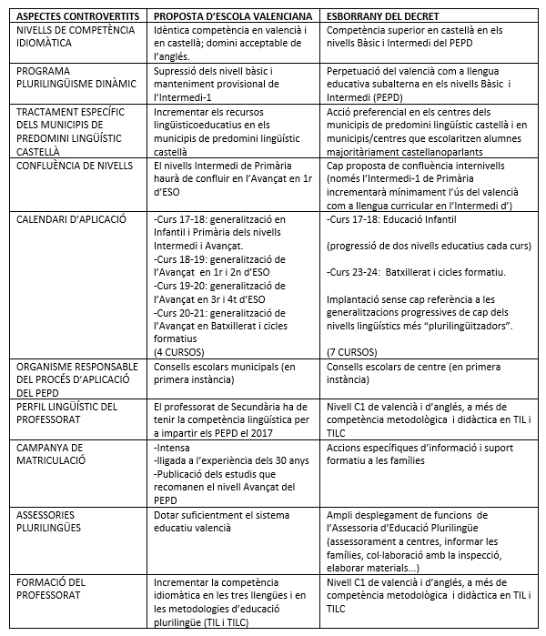 Per això EV ha donat una resposta immediata i ferma a l’esborrany del conseller Marzà que esquematitzem a grans trets en aquest quadre: