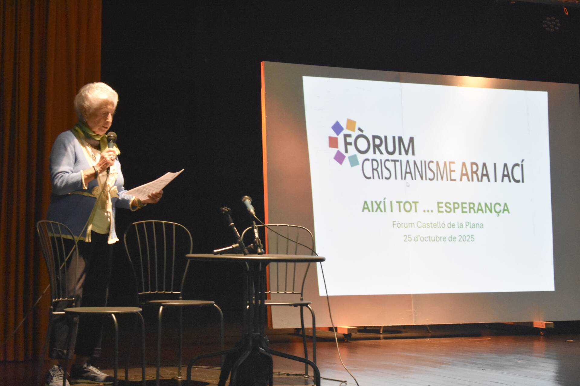 El Fòrum Cristianisme va permetre també escoltar experiències directes sobre el que significa l’esperança, a través del testimoni de representants de diferents entitats. Així, Dolors Mas va resumir la història de l’associació Josep Climent que es manté fidel a l’esperit del Concili Vaticà II amb el treball de la llengua i la cultura pròpia incorporant-la a l’ús de l’església valenciana. També Marisa Saavedra va traslladar la iniciativa que representa la HOAC centrada en l’àmbit obrer i dels treballadors dins l’Acció Catòlica. Jesús Delgado va transmetre el bagatge de l’associació cívica Fe i Diálogo que aborda temàtiques actuals des de la perspectiva religiosa. I per últim, Pili Chulilla va donar a conéixer el que suposa la Frater de Castelló, com a moviment d’apostolat que integra persones amb mobilitat reduïda i amb diferents graus de discapacitat, tot i ressaltar la “dignitat plena” de totes les persones.