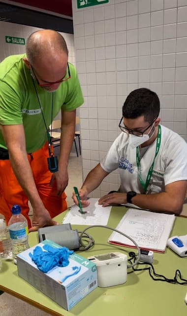 Em van plantejar l’opció de desviar l’atenció sanitària a un municipi pròxim, però m’hi vaig negar rotundament. El segon dia ja teníem accés en la primera planta del centre de salut i el personal sanitari voluntari no parava d’arribar. Muntàrem dos centres sanitaris auxiliars que serviren de suport al centre de salut per no saturar-lo i també per evitar els desplaçaments de les persones que necessitaven atenció. El que abans era una distància de deu o quinze minuts, eixos dies podia costar fins a més d’una hora. Dos col·legis van ser adaptats per a atendre la població i fins i tot dispensar medicació o administrar vacunes que vam haver de demanar de manera urgent a Salut Pública.