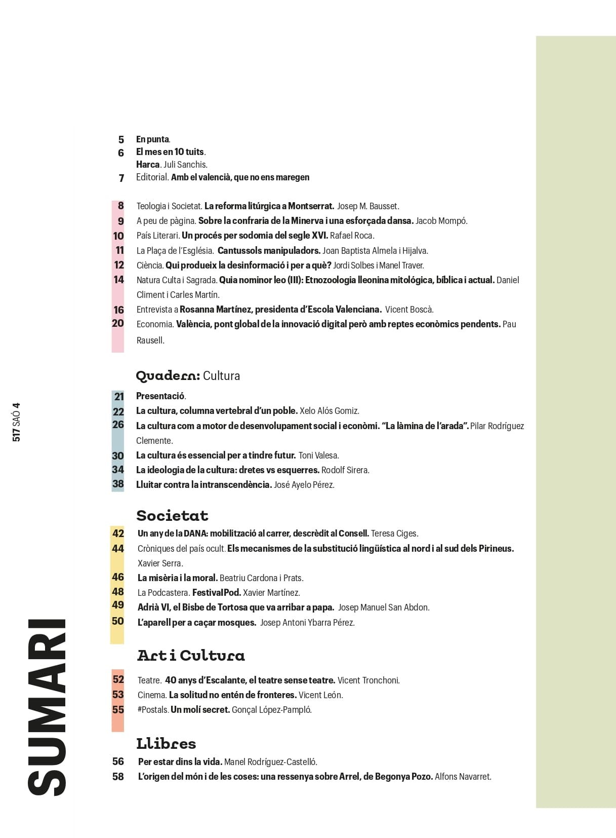 D’altra banda, la revista número 517 compta, a més a més, amb les seccions habituals dels nostres col·laboradors.